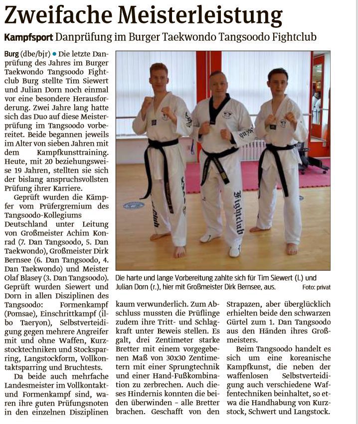 begann unter dem Namen "Taekwondo Gemeinschaft Burg e.V." und wurde im Februar 1991 gegründet. Der Verein besteht aus 45 Mitgliedern im alter von 7 bis 55 Jahren.